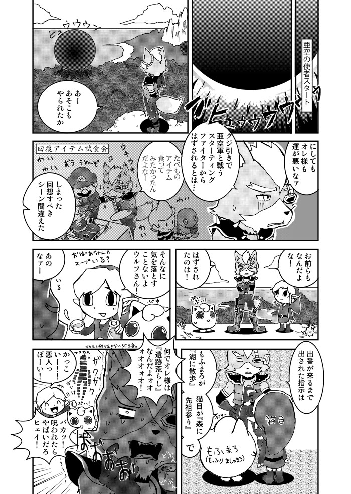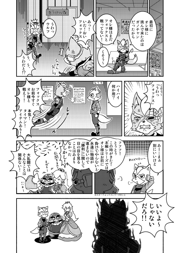 ウルフがスマブラX参戦に喜ぶ様子に焦点を当てた漫画です。