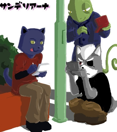 でも仲良さそうにDS対戦してる3人が描けて満足です。