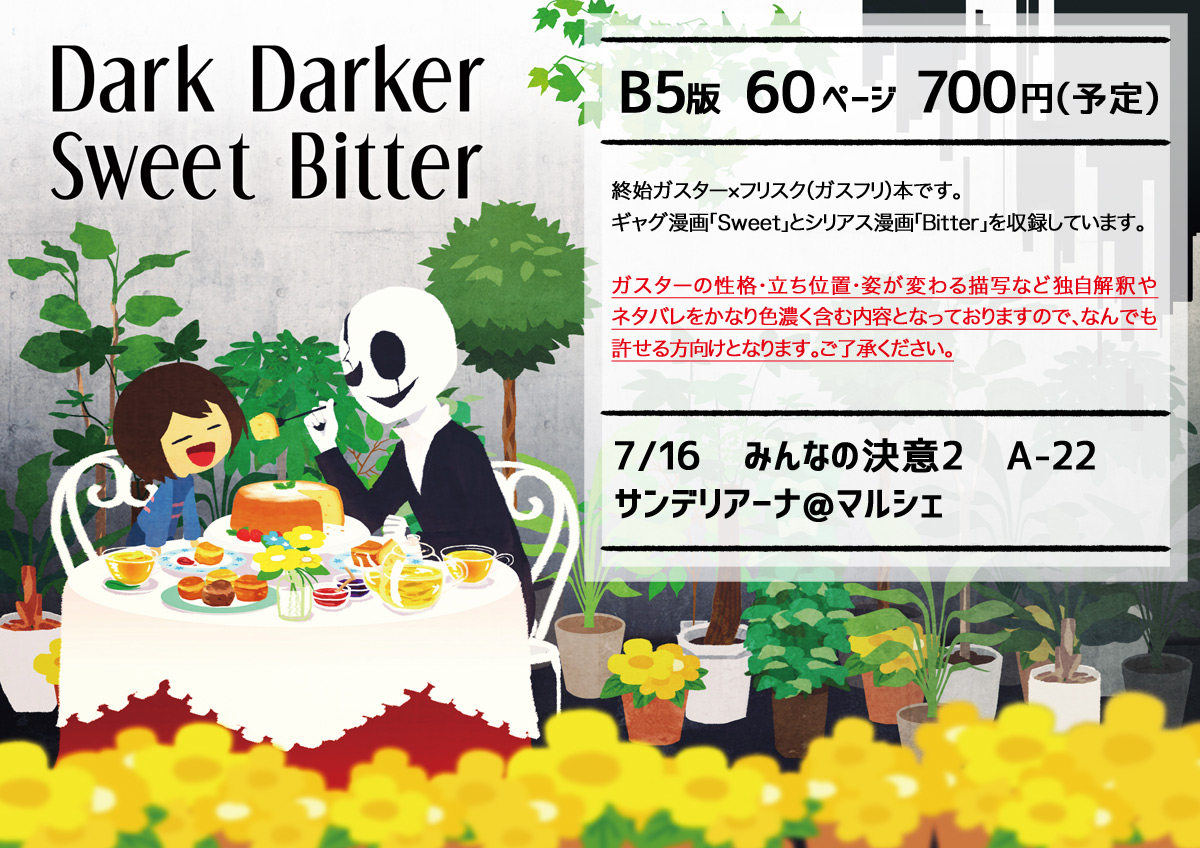 7月に開催されるUndertaleオンリーイベント『みんなの決意2』にスペースをいただいたので、サークル参加いたします。